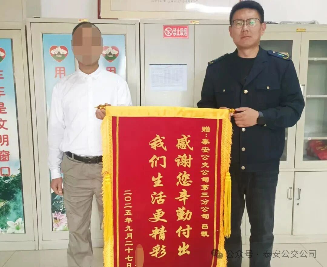 近日,市民裴先生手里緊緊攥著一面錦旗,專程趕到泰安市公交公司第三分公司。這面印著“感謝您辛苦付出 我們生活更精彩”的錦旗,是他特意為7路公交駕駛員呂凱準(zhǔn)備的——只為感謝兩天前的夜晚,呂凱師傅在站點(diǎn)多等的短短幾秒,讓自己順利坐上了公交車。