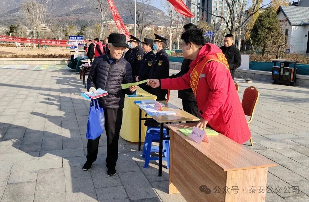 為貫徹道路交通安全綜合治理要求,切實(shí)提升市民交通安全意識(shí)與文明出行素養(yǎng),12月2日上午,泰安公交在岱廟文化廣場(chǎng)積極參與泰安市道路交通安全綜合治理委員會(huì)組織開展的以“文明交通 禮行天下”為主題的“全國(guó)交通安全日”集中宣傳活動(dòng)。